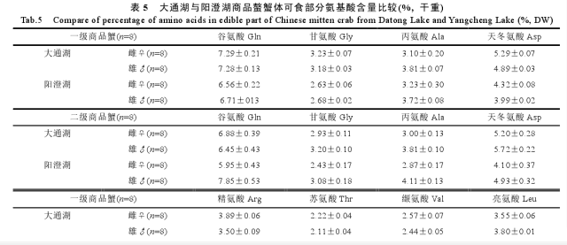 有研究人员将江苏境内太湖、阳澄湖、固城湖、洪泽湖等八大湖区的大闸蟹进行检测后发现,各湖区雌蟹可食部分指数以固城湖蟹最高,雄蟹则以太湖蟹最高;组成蟹黄和红膏的主要成分里面,粗蛋白含量以固城湖蟹最高,以阳澄湖蟹最低、粗脂肪含量以长荡湖蟹和太湖蟹最高。至于对大闸蟹口味影响较大的氨基酸组成方面,阳澄湖蟹也丝毫不占优势。